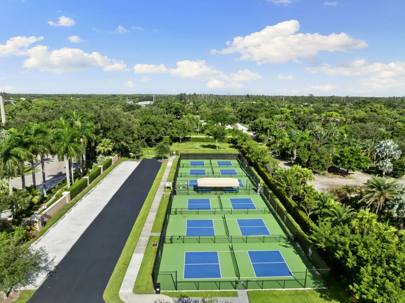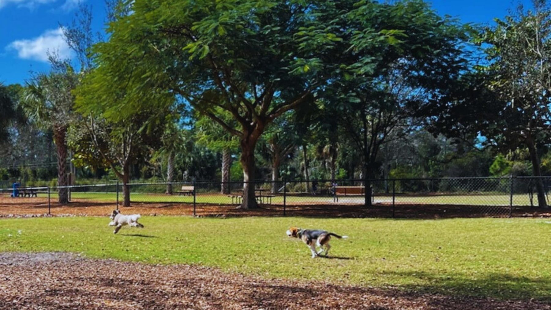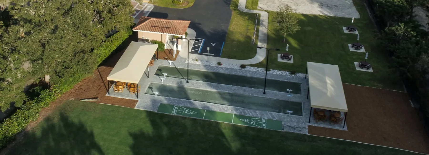 Sports Park features 6 Pickle Ball Courts with Leagues and Mixers, Lit Bocce Courts, Bean Bag Toss, Horseshoes, 2 Dog Parks (Big dogs / Small dogs), Restrooms and Parking.